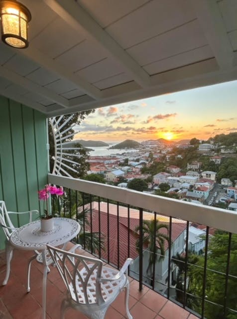 Enjoy the beautiful sea view overlooking town from your own private balcony. This queen guest room offers a full kitchen, ensuite bathroom, and everything you need for an extended vacation or business travel.